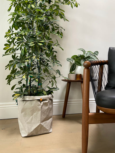 Minimalistic + boho-inspired plant pots are in bag form! These aesthetically pleasing plant bags are the perfect solution. No more heavy, fragile, ceramic plant pots, or terra cotta pots. All you need is this minimalist houseplant pot, your nursery pot, and a repotting mat to catch the water, and done!